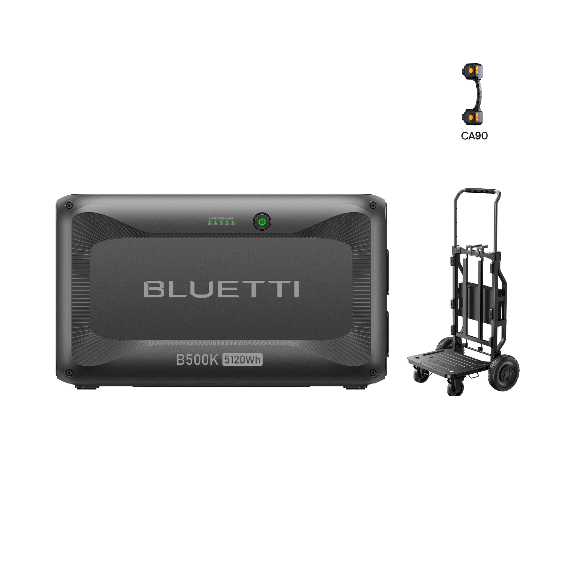 Get power and portability in one easy package. The BLUETTI B500K + Foldable Trolley 2 Bundle pairs the high-capacity 5,120Wh expansion battery with BLUETTI’s rugged folding trolley—perfect for scalable energy setups that are easy to move, position, and deploy.