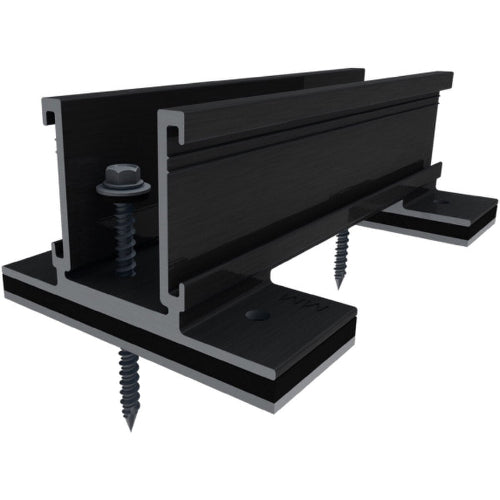 The RockIt Smart Slide (2011024) is a black-finished component used in EcoFasten’s RockIt rail-less, flashless assemblies. The 6.75" Smart Slide features aluminum construction with EPDM and adhesive release liner elements for a clean, alignment-friendly install within RockIt Flashless Slide assemblies.