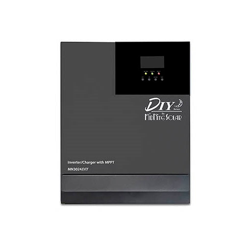 The Midnite Solar MN3024DIY is a powerful 3000W inverter-charger designed for 24VDC systems. It includes a built-in MPPT charge controller, providing a comprehensive solution for off-grid and hybrid solar installations.