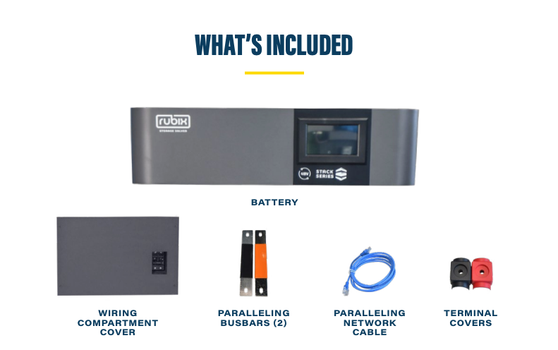 The Rubix RS-24200 combines long-life LiFePO₄ chemistry, integrated safety features, and a stackable design into a reliable 24-volt energy storage solution—perfect for homeowners and installers looking for flexible, future-ready battery systems.