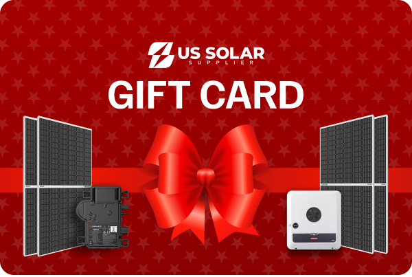 US Solar Supplier Digital Gift Cards cannot be redeemed for cash or used to purchase other Gift Cards.